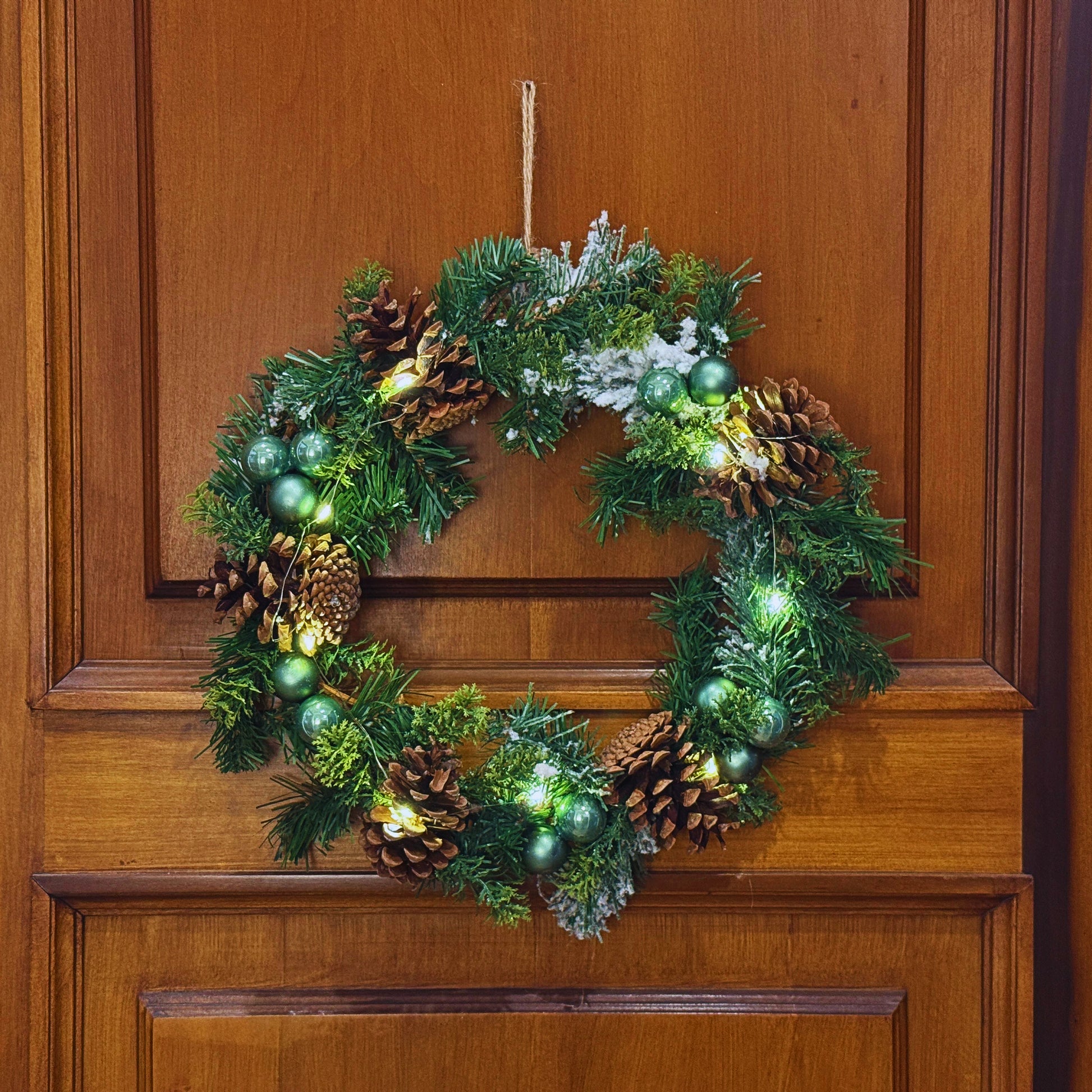 Trasforma il tuo spazio in un'atmosfera magica con questa splendida ghirlanda verde che cattura l'essenza del Natale. Le luci scintillanti creano un'accoglienza calorosa. Perfetta per la porta d'ingresso, il camino o qualsiasi angolo della casa, questa ghirlanda porta con sé la gioia e lo spirito festivo della stagione. Un dettaglio che trasforma ogni ambiente in un'oasi di calore e meraviglia natalizia.